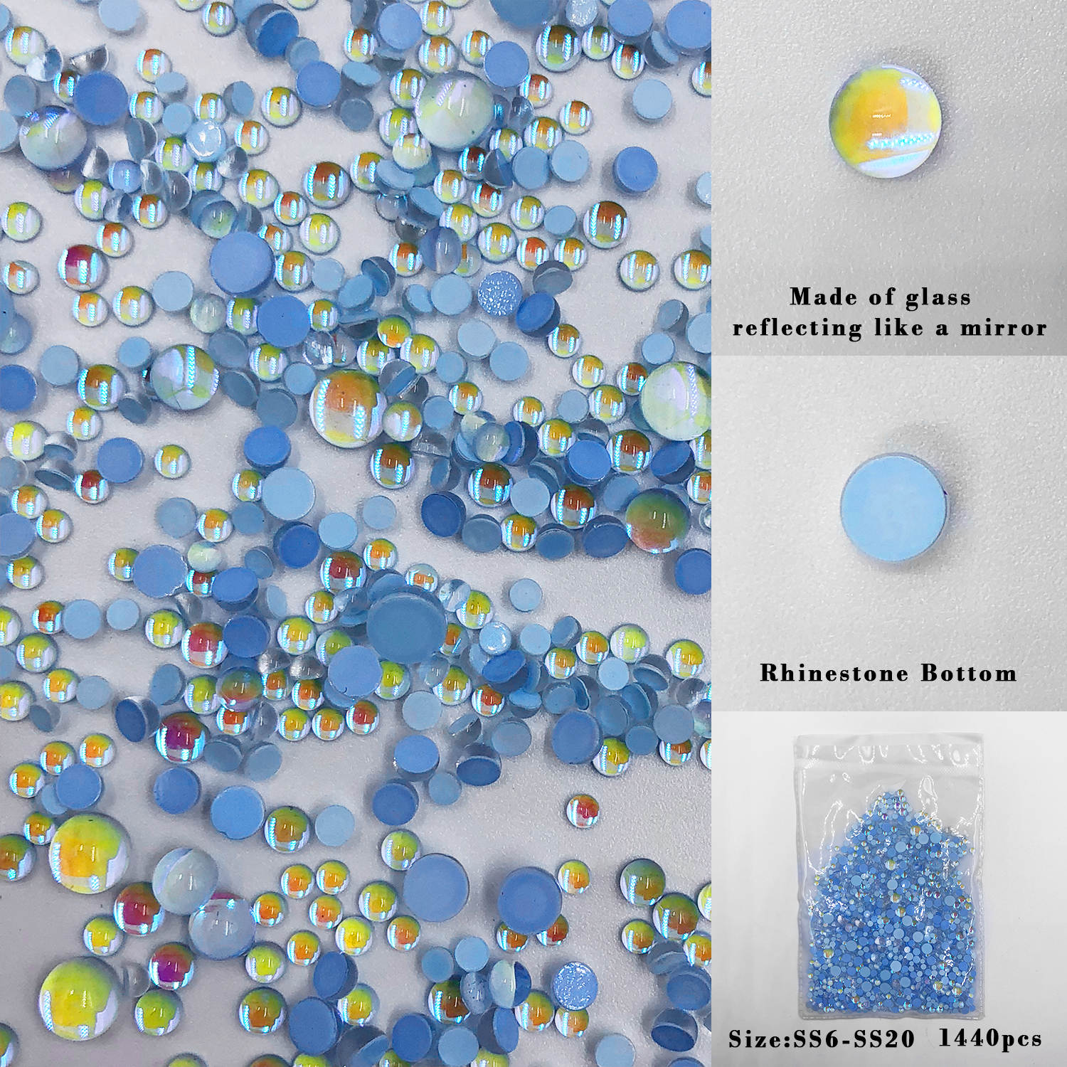 Light Sapphire Mermaid Tears are water drop-shaped glass rhinestone. These dome-shaped rhinestones are flatback and must be applied with your choice of glue.
