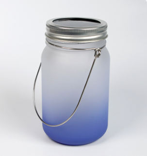 15oz 450ml Frosted Gradient Custom Sublimation Blanks Glass Mason Jar Light With Lantern Lid And Metal Handle. These have a soft multi colored lights.